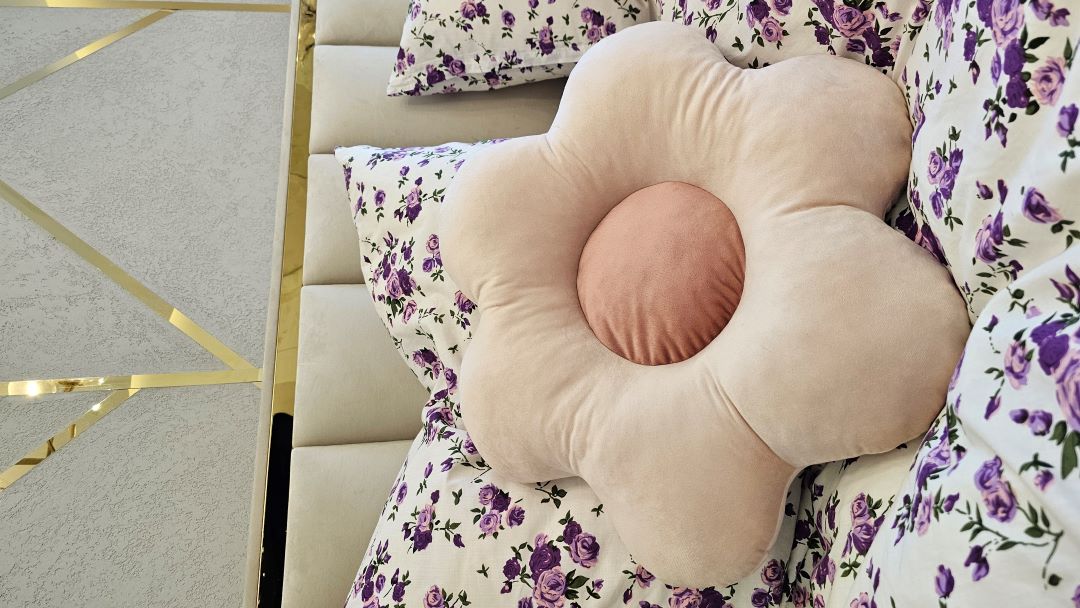 Poduszka z wypełnieniem w kształcie kwiata.
